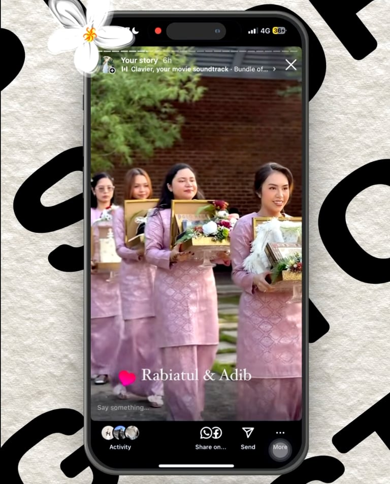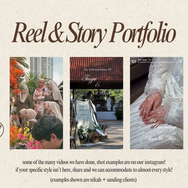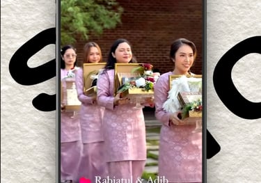 Kami menawarkan perkhidmatan rakaman konten perkahwinan secara live (IG Story/Reels/TikTok style) menggunakan telefon berkualiti tinggi.