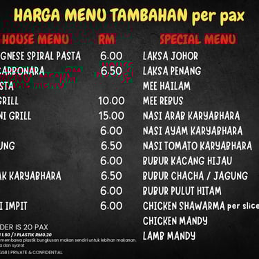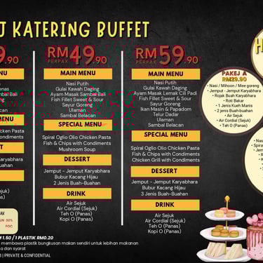 Selain ruang acara, kami turut menyediakan hidangan katering yang lazat serta perkhidmatan mesra bagi memastikan setiap detik majlis anda berjalan lancar dan penuh gaya. π