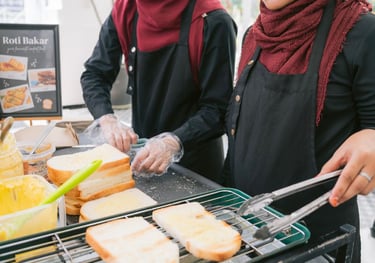 Kami sediakan roti bakar panas yang lembut di dalam, rangup di luar β dengan pilihan perisa istimewa seperti Butter Kaya, Coklat, dan Butter Garlic yang pasti buat tetamu anda teringat-ingat.